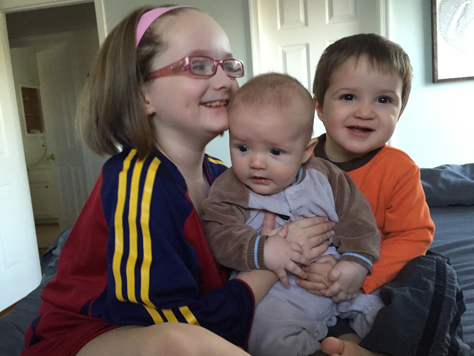 I took these pictures the other day and when I looked at them on the computer I couldn't help but laugh. Sunshine and River are enjoying themselves, but Ocean looks a little distressed. Almost like he wants me to save him from them :)